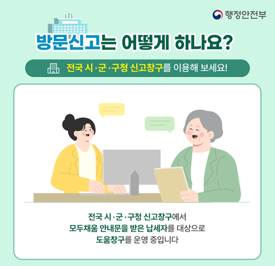 전국 세무서 및 지자체 신고창구에서 제한적 방문신고