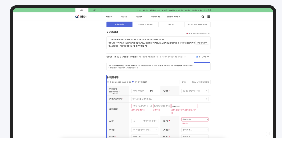 실업급여 신청전후로 구직활동 내역이 있을경우 이미지 파일과 함께 필요한 정보를 입력하시면 됩니다.